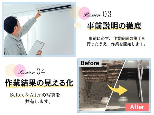 ・お客様ご不在時のサービスは行っておりませんが、作業中の外出は可能です。作業前と作業後には必ずお立合いをお願いしています。