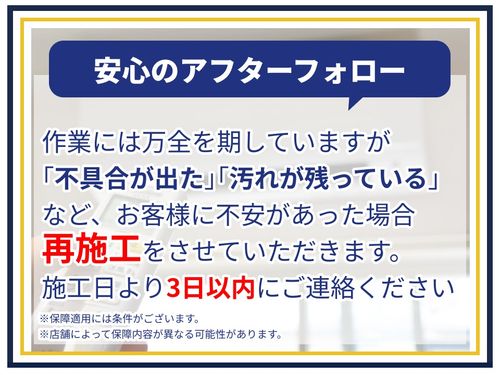 ・クリーニング全般において、設備自体が10年以上経過しているモノについては保障しかねる場合があります。
