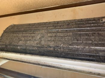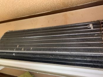 フィンに毛やらほこりやら詰まっています。エアコンの効きが悪いみたいでした。