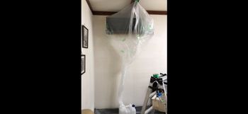 サイズが大きく、ホッパーが使えないのでシートで養生します。