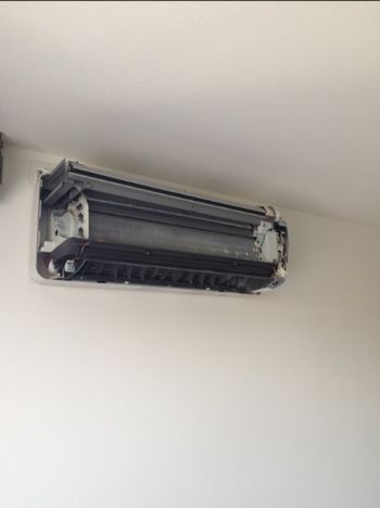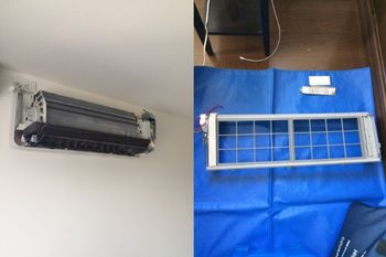 まだ熱交換器上部にお掃除ユニットが搭載されたままの状態