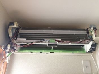 そうすることで、熱交換器(アルミフィン)とシロッコファンが露出します。