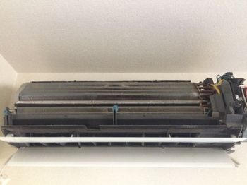 お掃除ユニットを分離させることで熱交換器(アルミフィン)が露出します。