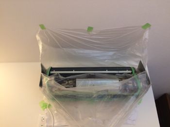 エアコン周辺と電装基盤を養生することで防水を図り、