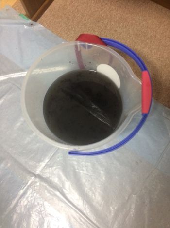 洗浄した結果、洗浄水はカビ汚れに重く染まっています。