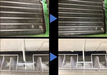 お掃除ユニットを分離させて熱交換器(アルミフィン)を露出させます。