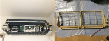 前方部にある電装基盤を防水し、さらに全体を養生して高圧洗浄に備えます。