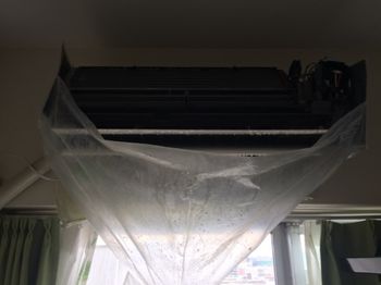 全体を養生して高圧洗浄していきます。
