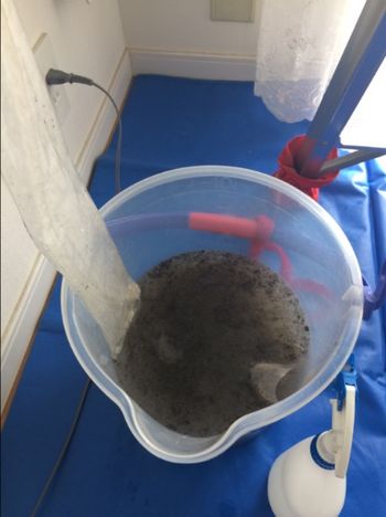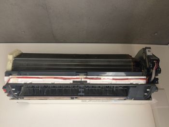 アルミフィンに固着したホコリやファンのカビ汚れを洗い流します。
