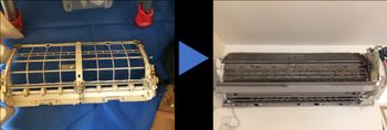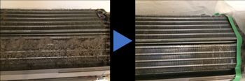 熱交換器(アルミフィン)の下部に目詰まりする程に固着していた