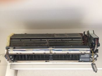 お掃除ユニットを分離させて熱交換器(アルミフィン)を露出させます。