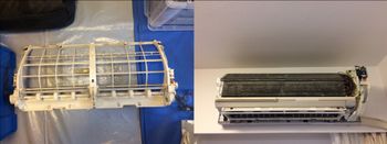 熱交換器(アルミフィン)やファンに固着していたカビ汚れを除去します。