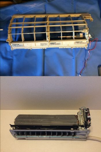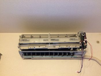 続いてお掃除ユニットを分離させて熱交換器(アルミフィン)を露出させます。