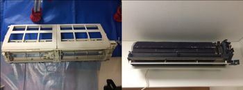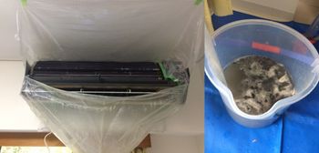 お掃除ユニットを分離させて熱交換器(アルミフィン)を露出させます。