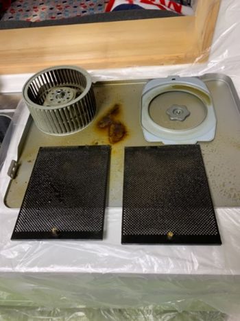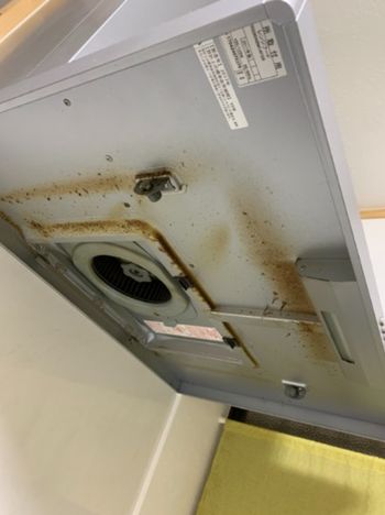 油とホコリ汚れが混ざり合ってべったりと付着しています。