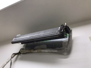 電装品を全て外すと、心置きなく洗浄できます。表から裏から洗浄液をかけることができます。壁掛け完全分解洗浄は取り付けた状態で洗えます。
