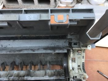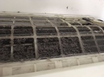 ファンの裏側、裏ドレインパンには汚れがびっしり。