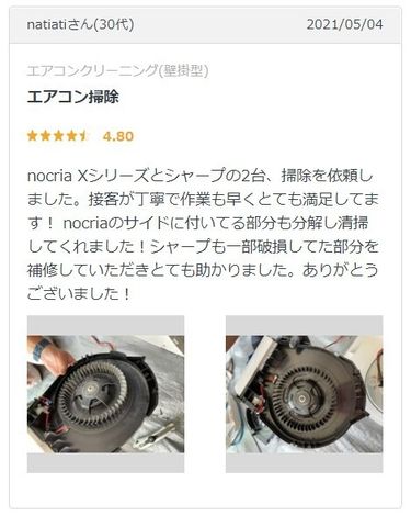 依頼するにあたり、最初は、とても不安でしたが細かいところまで分解してクリーニングしていただいてとても良かったです。以前依頼した業者は、分解もしないでサッとやっただけだったようですよ、カビがすごいと教えていただきました。今回は、依頼して良かったと思い、また依頼したいと思いました。ありがとうございました。