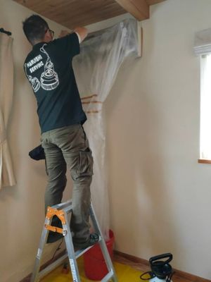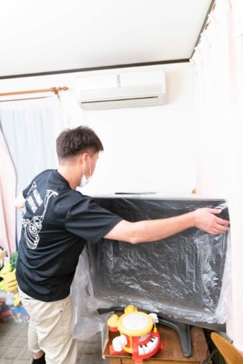 周囲に電化製品などある場合は作業に支障のないよう移動し、汚れなど飛び散らないよう、ビニールなどで養生致します。
