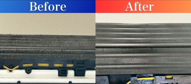 外せる部品を分解し、熱交換器・ファン・ドレンパンまで洗剤と高圧洗浄で徹底洗浄。
