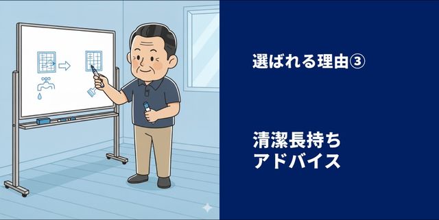 また、今後のメンテナンス方法についてのアドバイスもいただき、とても親切にしていただきました。