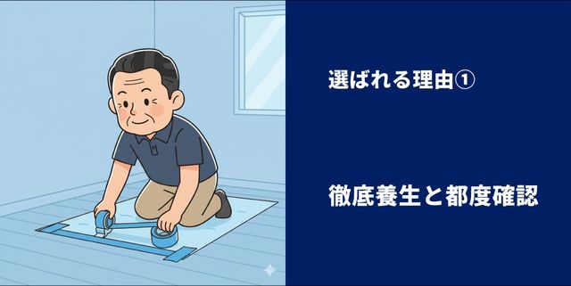 室内を汚さないように床や家具をしっかり養生し、工程ごとに作業箇所をお見せしますので、不安なく任せられます。
