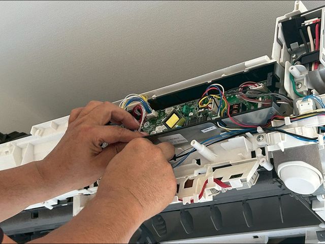 1) ご挨拶後にエアコンの動作確認をいたします。異音や異常を知らせるタイマーランプの点灯や破損箇所が無いかを確認します。お客様の気になる点などヒヤリングいたしますのでお伝えください。