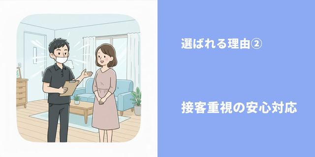 作業前後のご説明やお声がけを大切にし、初めての方でも安心して任せられるよう努めています。マナー・挨拶の徹底はもちろん、お客様の不安を一つひとつ解消していきます!