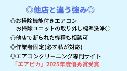 エアコンクリーニング専門店で2025年度優秀賞を受賞。施工実績2000件超え。口コミ依頼なしで高評価を積み重ね、安心と誠実な対応をお約束します。