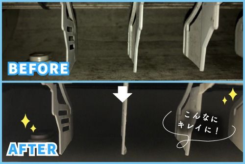 ただし、外した部品などの頑固な汚れには、必要に応じて塩素系・アルカリ性の洗剤を使い分け、しっかり除去します。