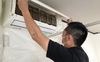 まず、お客様の大切な家具や壁が汚れないよう、エアコンの周囲を専用のシートで丁寧に保護します。