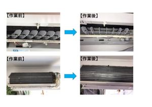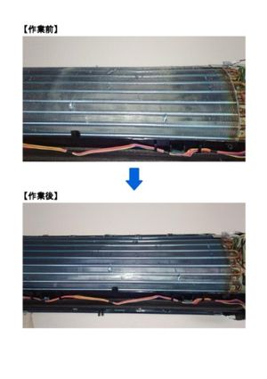 2021年4月1日ご訪問した作業前後のエアコン写真です。作業前は全体的にホコリをかぶってましたが、少しピンぼけしてますが、作業後はホコリもキレイに取れております。