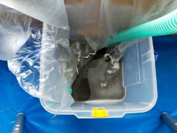 三菱エアコン霧ヶ峰(お掃除機能付きMSZ-ZW224W)のクリーニング。写真は取り外したパネルとお掃除ユニット。