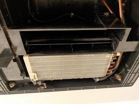 エアコンクリーニングと一緒にご依頼を受けた浴室多機能換気扇のパネルの内側です。ホントは浴室のカテゴリーですが、当店ではエアコンへのオプション付けも承っています。