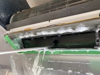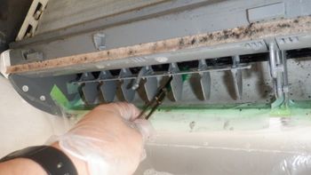 エコ洗剤を掛け、熱交換器をブラシで擦った後に、水、またはお湯で洗い流します。