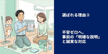 無理な営業や不明瞭な追加請求は一切いたしません。作業後には、お客様と一緒に仕上がりを確認し、心からの満足をお届けします。