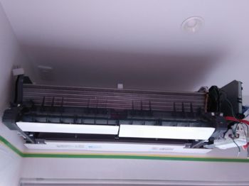 このようにおそうじユニットまで取り外し、熱交換器を全面露出した上で高圧洗浄しますので、すみずみまでキレイにします。
