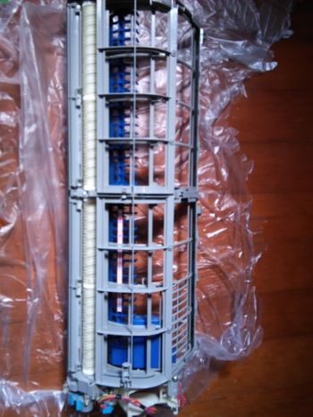 基盤など水に濡れてはいけない部分はビニール養生しますので、故障させません。おそうじユニットをつけたまま洗浄すると、高圧洗浄の水が飛び散るので故障の原因になります。また、おそうじユニットはもちろん、熱交換器もすみずみまでキレイにできません。