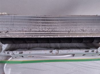 お掃除ユニットなど分解できる部品はしっかり分解して熱交換器を前面露出した上で、しっかりすみずみまでキレイにします。