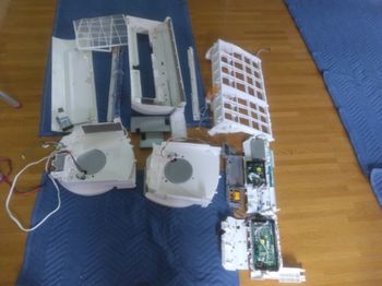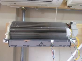 ファンなど取り外して熱交換器を全面露出して洗浄します。