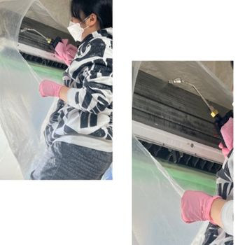 女性スタッフのエアコンクリーニングand室外機クリーニング
