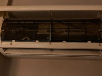 ご依頼頂いたエアコン洗浄前の写真です。フィルターが黒くなっており至る所にカビが発生しています。10年間清掃はしていないということでした。
