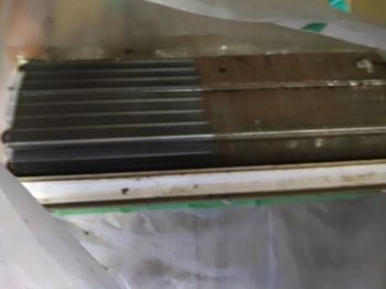 約10年毎年、市販の洗浄スプレーにて洗浄されていたエアコンに出会いました。画像は半分だけ高圧洗浄機で洗浄した後です。