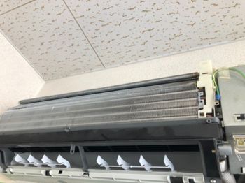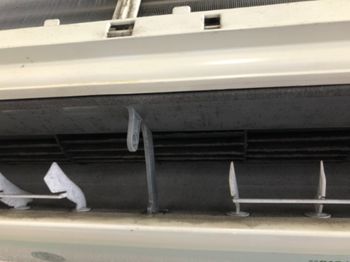 養生した様子です。大切なエアコンを守りつつ、洗剤と高圧の水でしっかりと汚れを落としていきます。