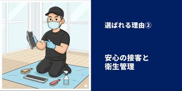 訪問時は身だしなみ・挨拶・声かけを徹底。室内を汚さない敷物・靴下の履き替え、道具の拭き取り、手袋・マスクの着用で衛生面に配慮します。追加料金は原則なし(特殊作業は事前説明のうえご相談)。駐車場代はお客様ご負担となりますが、できる限りお安い所を利用いたします。保険加入で万一の際も迅速に対応します。