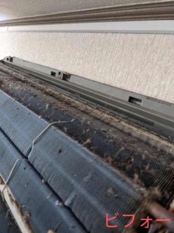 薬剤をかけて丁寧にホコリを洗浄しますキレイになりました