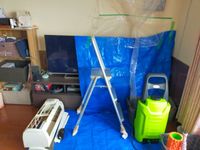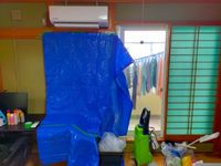 まず、お客様の大切な家具や壁が汚れないよう、エアコンの周囲を専用のシートで丁寧に保護します。