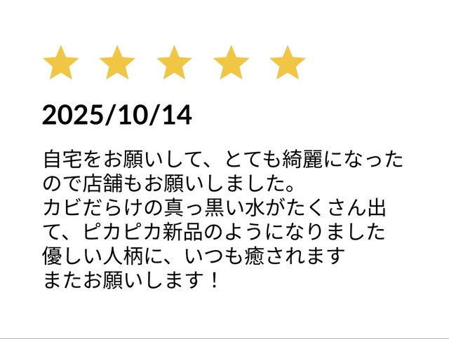 自宅をお願いして、とても綺麗になったので店舗もお願いしました