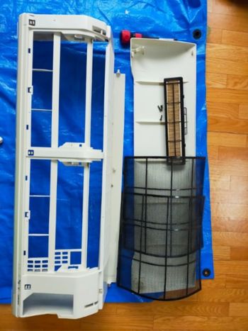 分解パーツ類は、ブラッシングしたあと、希釈したアルカリ電解水で拭き上げ。