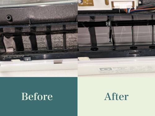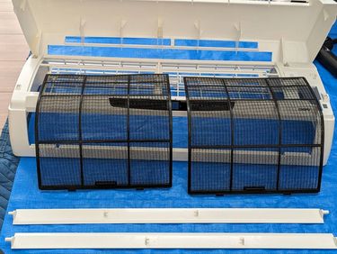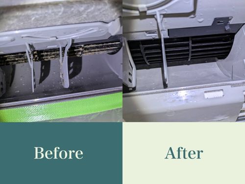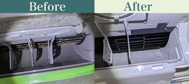 熱交換器(裏側や左側)にホコリや落ち葉、ペットの毛などがついてると、マスクをしてる状態になって、空気の流れが悪くなります💦 簡易的に表面だけでも洗ってあげたり、分解して内側からも洗うと効率が良くなり、モーターもMAXで回らなくて良くなります! 電気代節約にも繋がりますね〜
